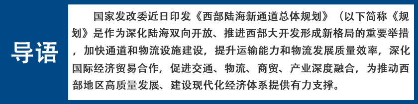 西部陸海新通道位于我們西部地區腹地,北街絲綢之路經(jīng)濟帶,南連21世紀海上絲綢之路,協(xié)同銜接長(cháng)江經(jīng)濟帶,在區域協(xié)調發(fā)展格局中具有重要戰略地位。