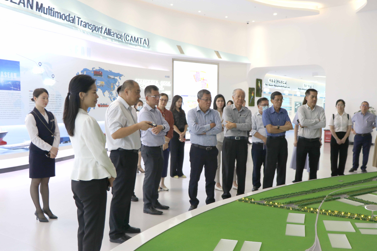 在中新物流園展示中心,考察組深入了解園區的產(chǎn)業(yè)布局及整體建設情況。由新加坡太平船務(wù)投資建設的中新物流園是廣西參與“一帶一路”及推進(jìn)中新互聯(lián)互通、西部陸海新通道建設、海洋經(jīng)濟發(fā)展重大項目之一,充分利用在國內國際、特別是新加坡太平船務(wù)集團在集裝箱海運及物流方面等資源,帶動(dòng)更多貨物經(jīng)由北部灣進(jìn)出,拉近了中國與東盟的經(jīng)貿合作距離,吸引更多的海內外企業(yè)來(lái)中國發(fā)展。