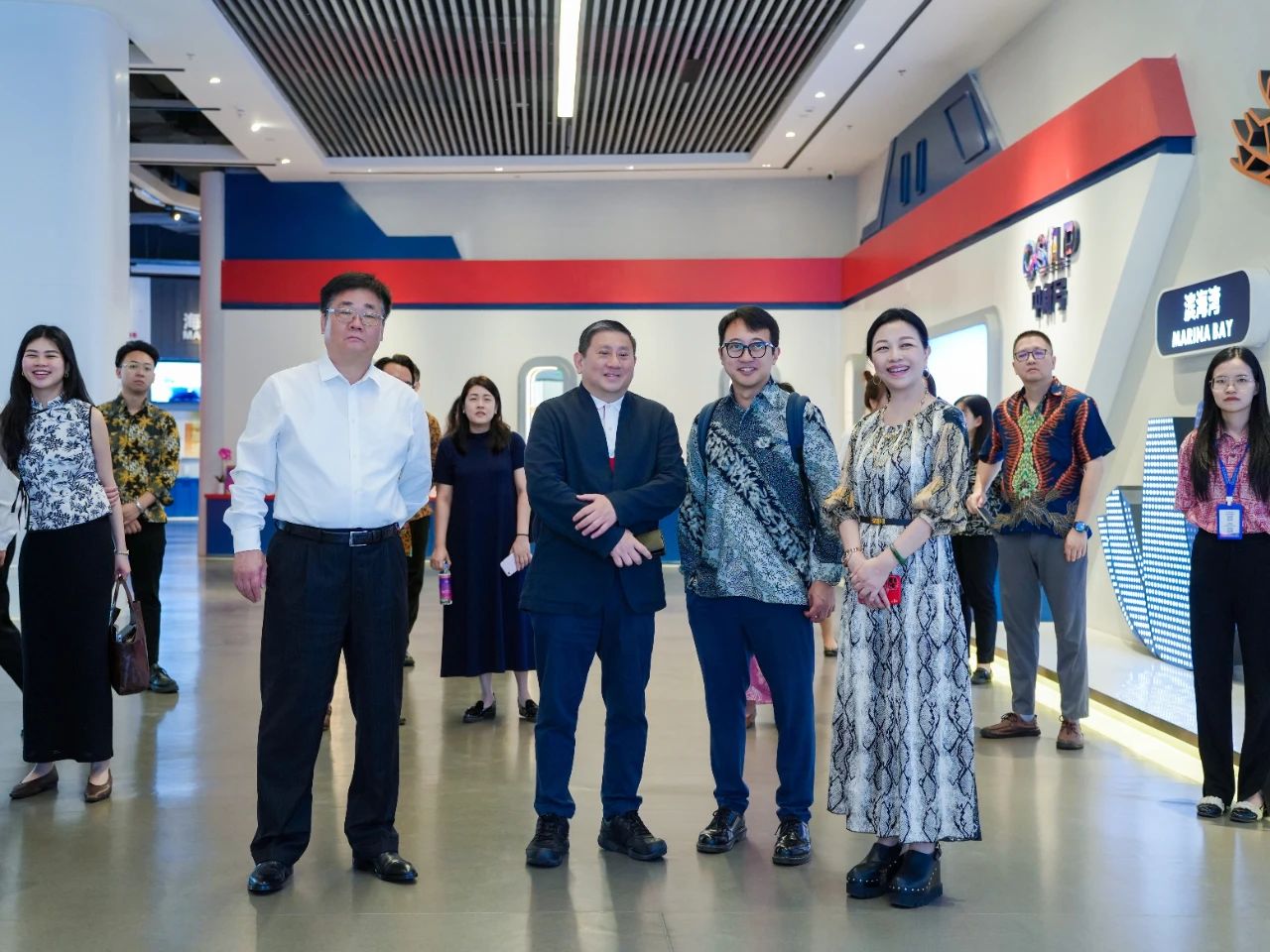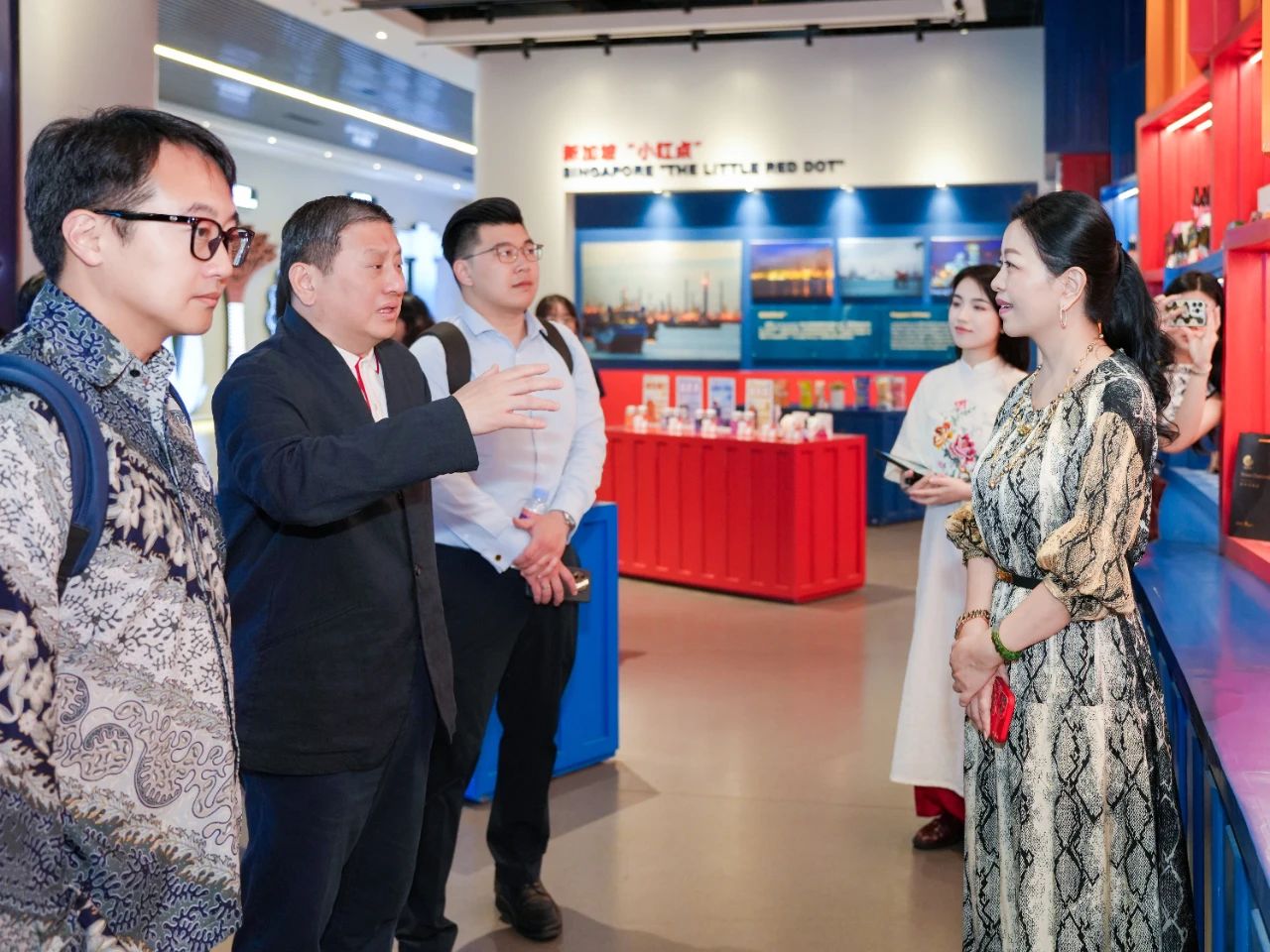 步入匯聚中心,陳海泉大使便被新加坡展館門(mén)口的魚(yú)尾獅所吸引,特意駐足拍攝。進(jìn)入展館后,考察組沉浸式體驗了璀璨星空走廊、垂直綠化的花園城市與組屋街區等場(chǎng)景,紛紛表示很開(kāi)心能在廣西看到一個(gè)多維度呈現“獅城”獨特風(fēng)貌的地方,漫步其中恍若回到新加坡,倍感親切。同時(shí),考察組充分認可了匯聚中心線(xiàn)上線(xiàn)下相結合的創(chuàng )新理念,并就未來(lái)在經(jīng)貿、物流等領(lǐng)域的合作與匯聚中心團隊進(jìn)行了交流并達成共識。