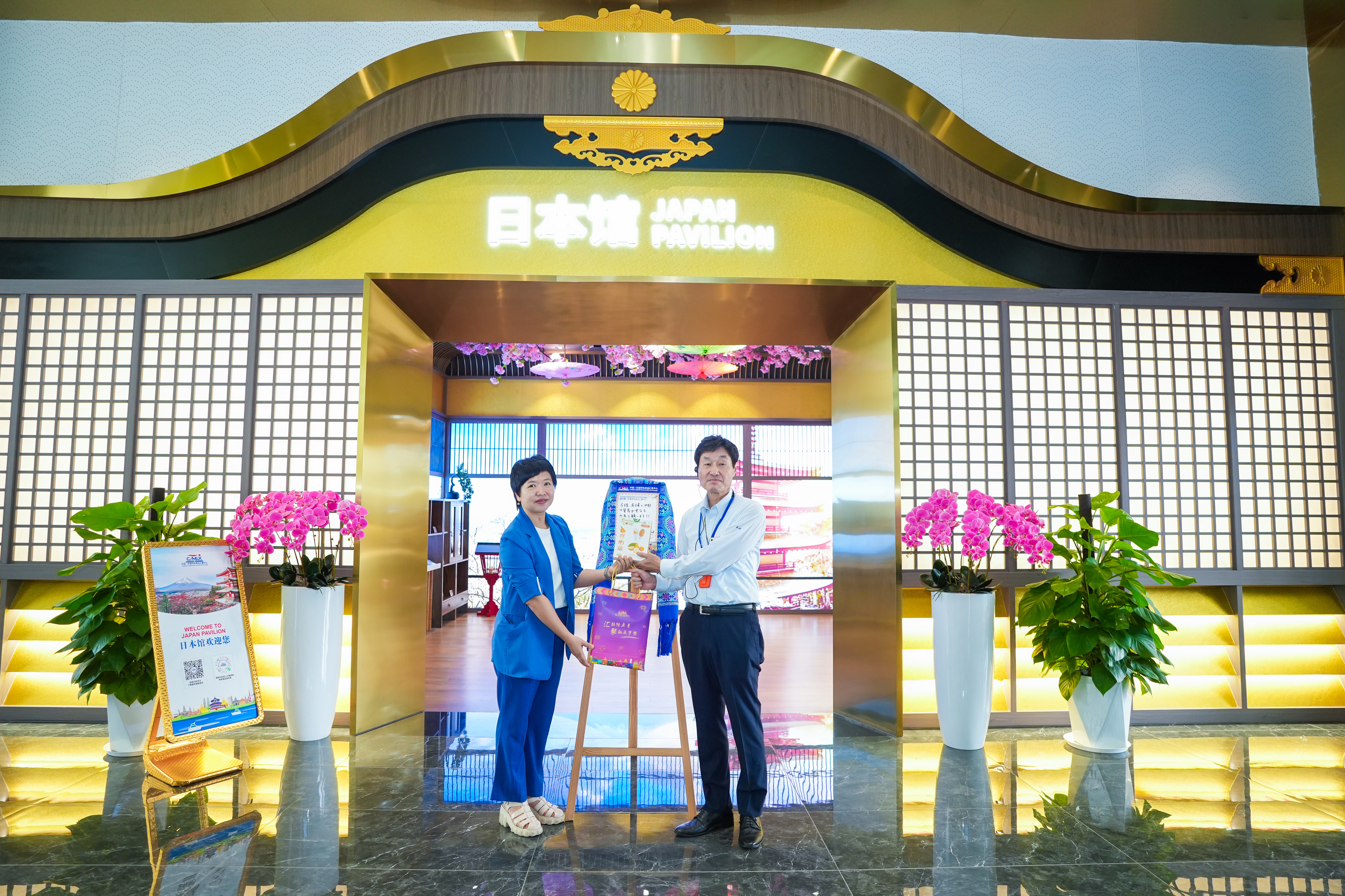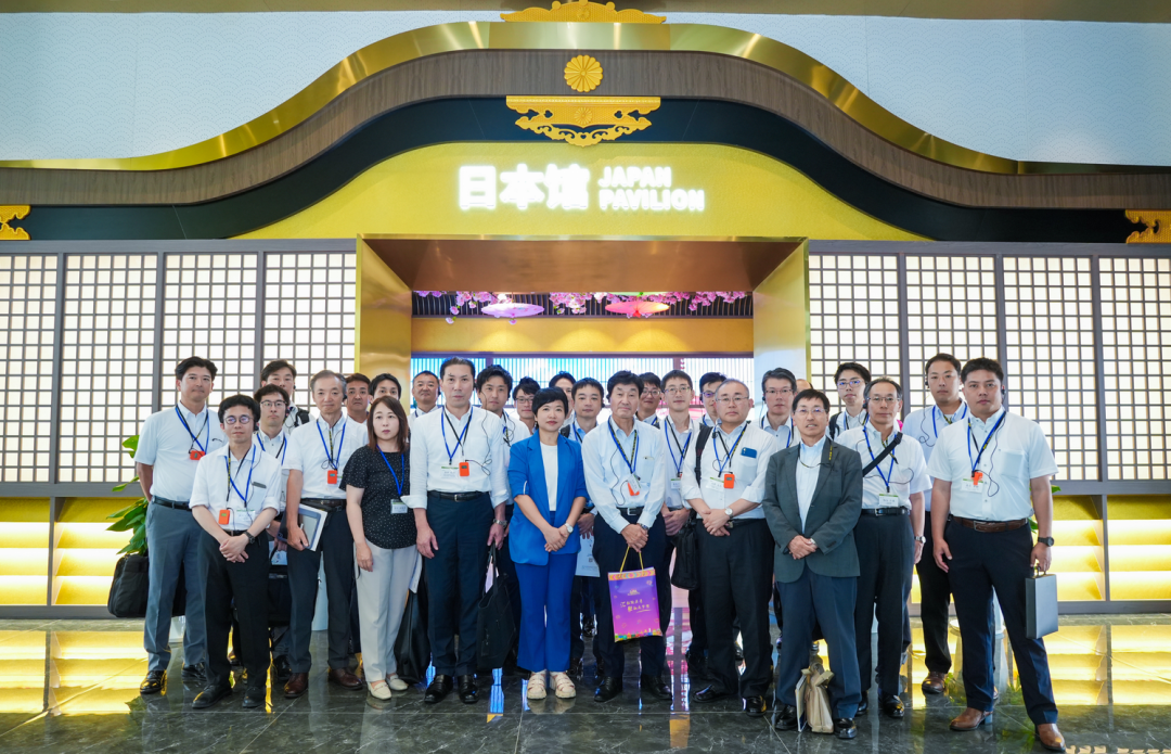 訪(fǎng)華團在匯聚中心日本館合影留念